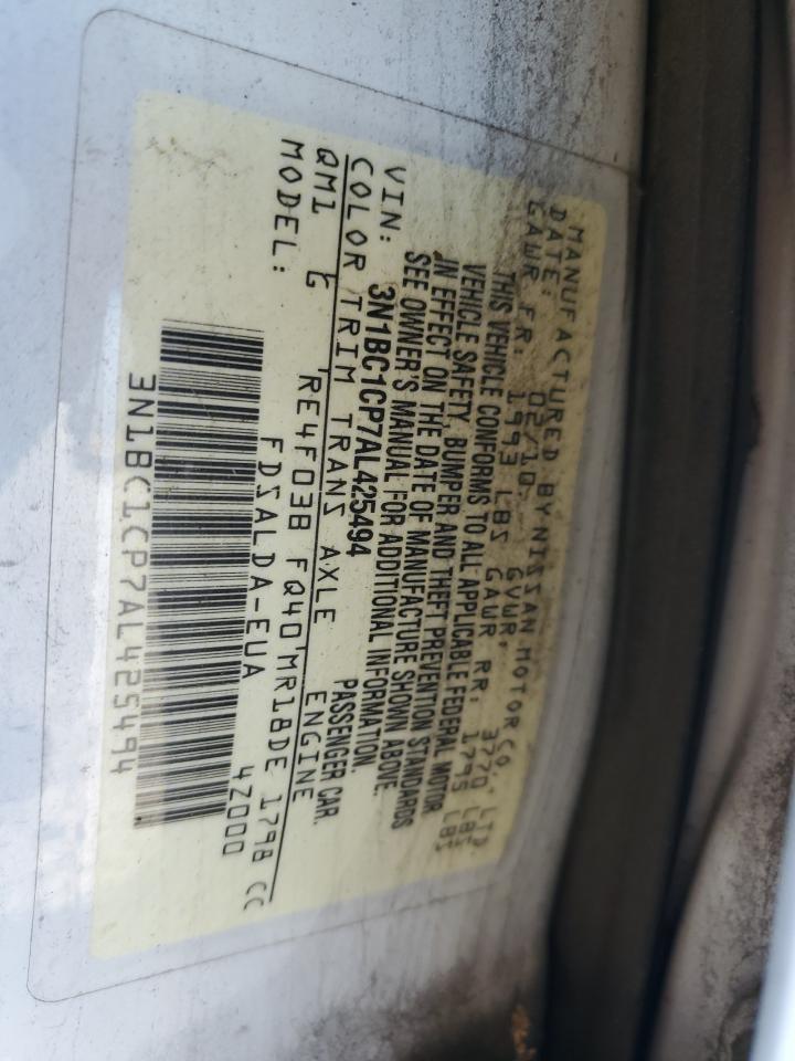 2010 NISSAN VERSA - 3N1BC1CP7AL425494, колір - Білий, 1.8, Бензин, із США