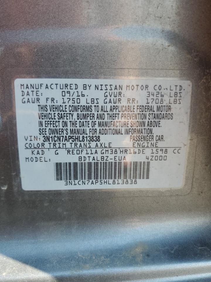 2017 NISSAN VERSA - 3N1CN7AP5HL813838, колір - Сірий, 1.6, Бензин, із США