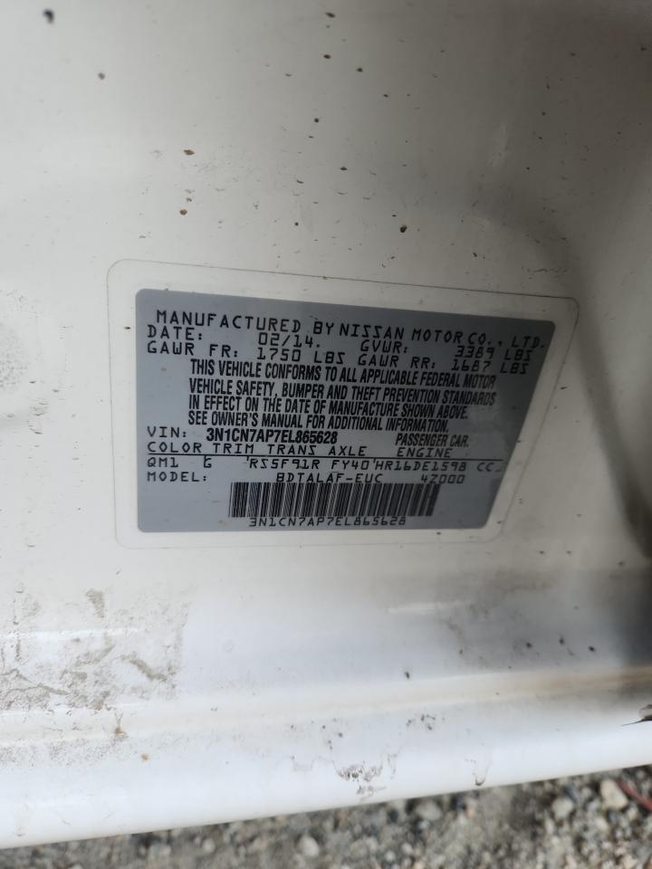 2014 NISSAN VERSA - 3N1CN7AP7EL865628, колір - Білий, 1.6, Бензин, із США