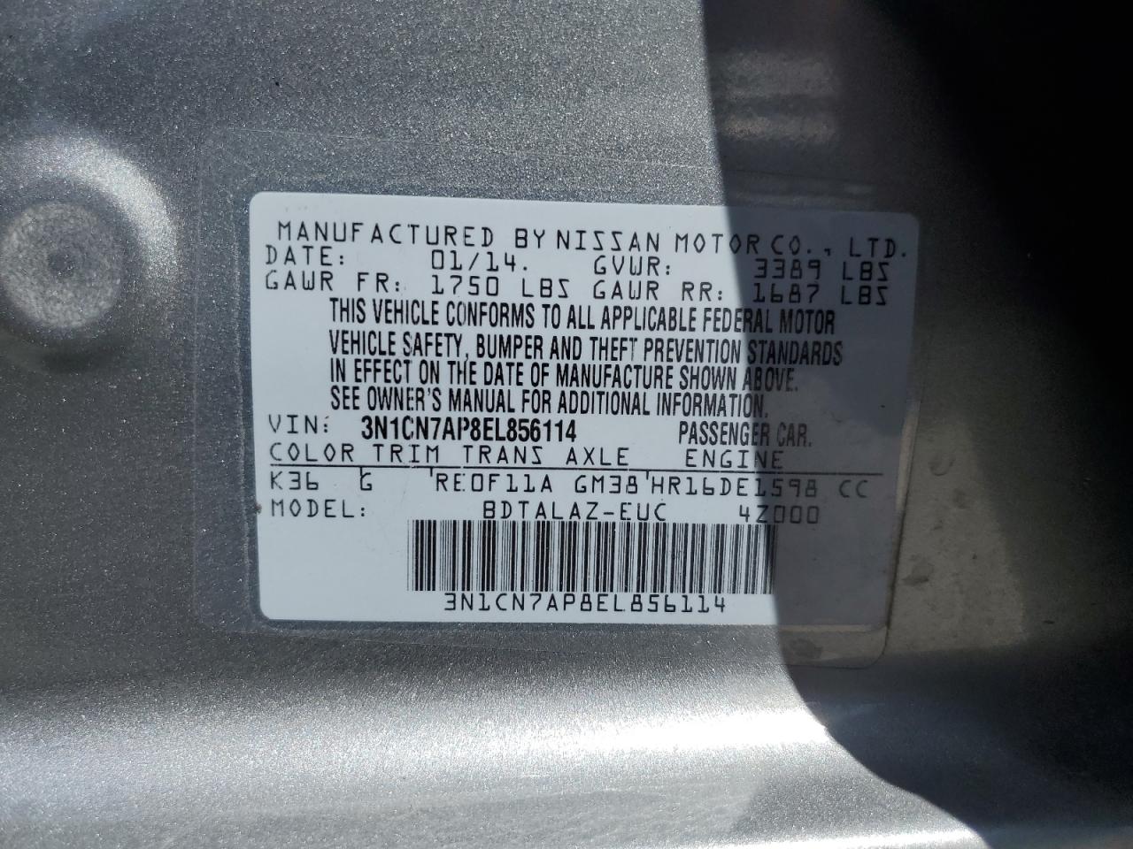 2014 NISSAN VERSA - 3N1CN7AP8EL856114, колір - Срібний, 1.6, Бензин, із США