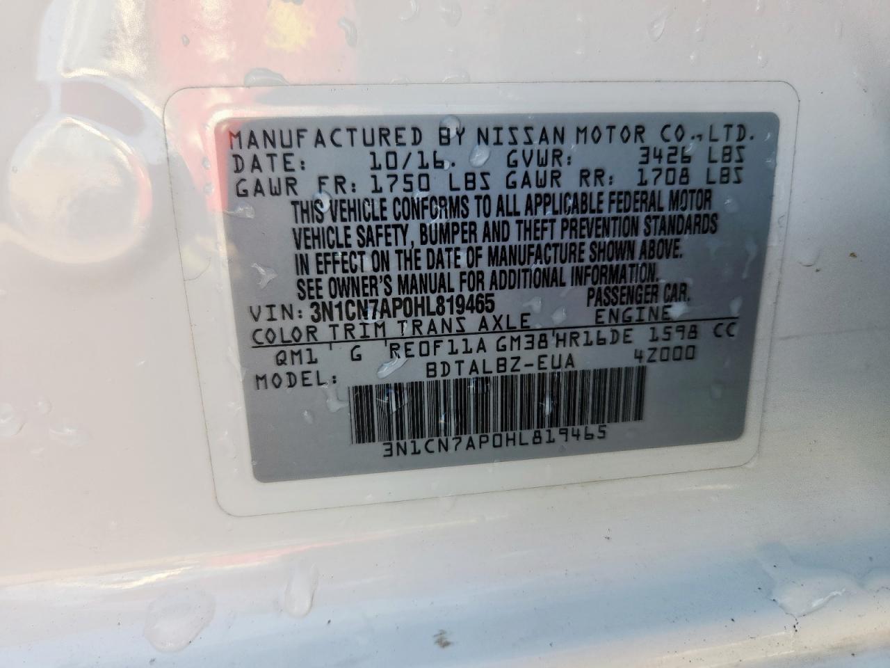 2017 NISSAN VERSA - 3N1CN7AP0HL819465, колір - Білий, 1.6, Бензин, із США