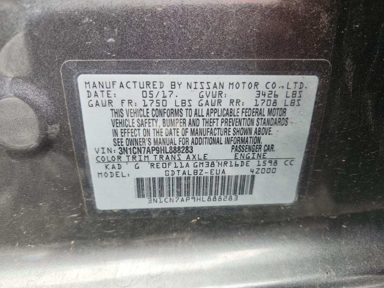 2017 NISSAN VERSA - 3N1CN7AP9HL888283, колір - Сірий, 1.6, Бензин, із США