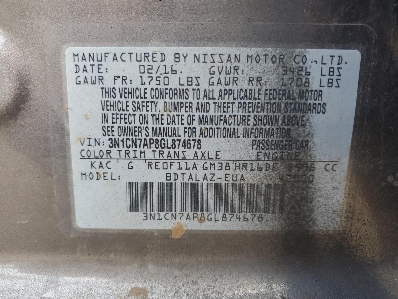2016 NISSAN VERSA - 3N1CN7AP8GL874678, колір - Сірий, 1.6, Бензин, із США