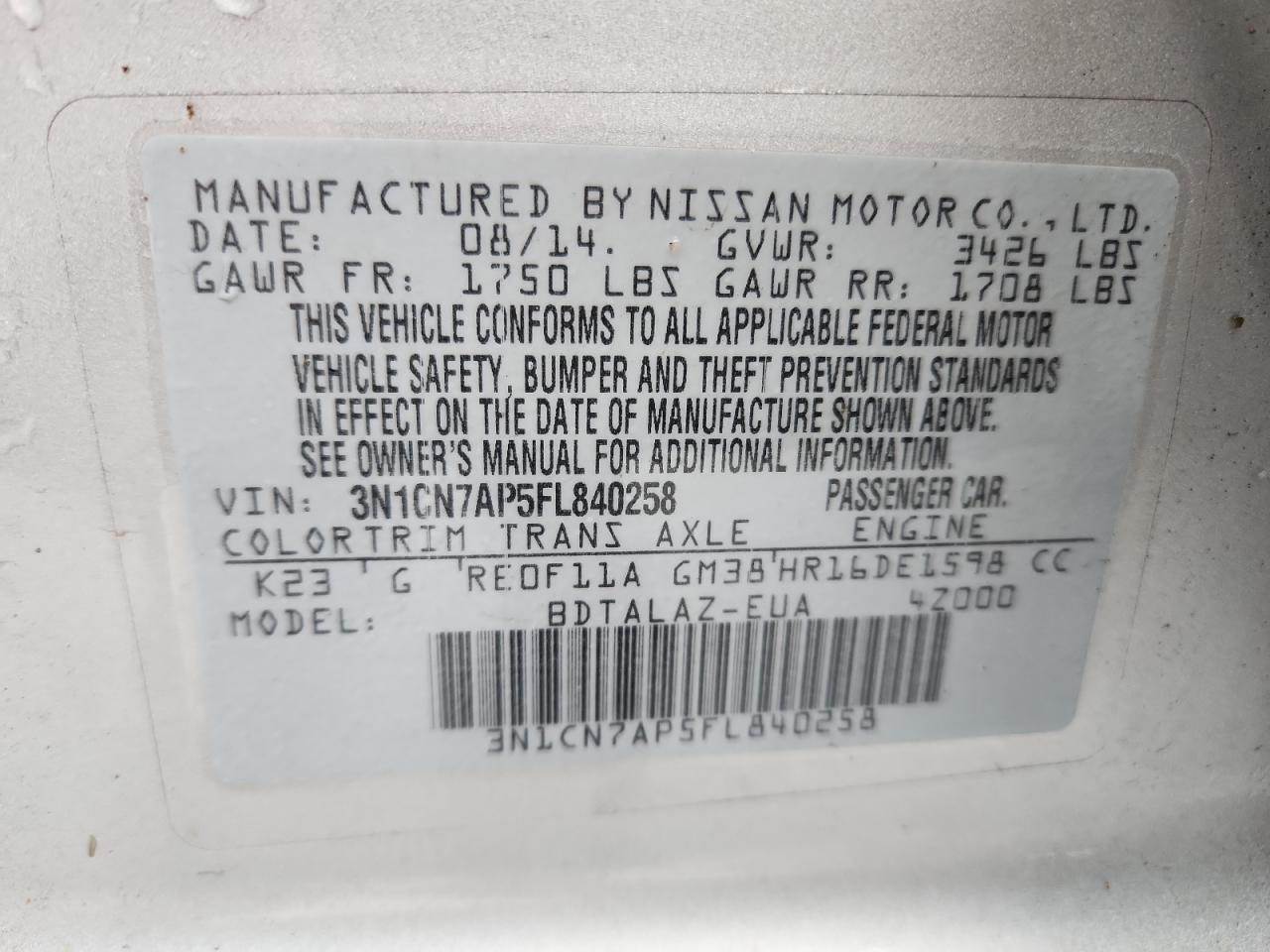 2015 NISSAN VERSA - 3N1CN7AP5FL840258, колір - Срібний, 1.6, Бензин, із США