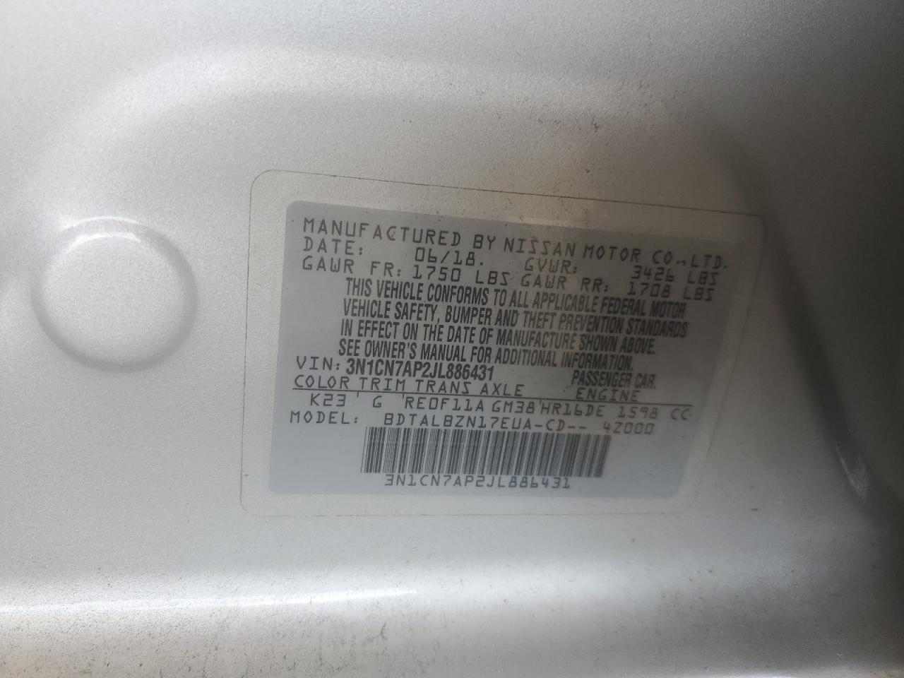 2018 NISSAN VERSA - 3N1CN7AP2JL886431, колір - Срібний, 1.6, Бензин, із США