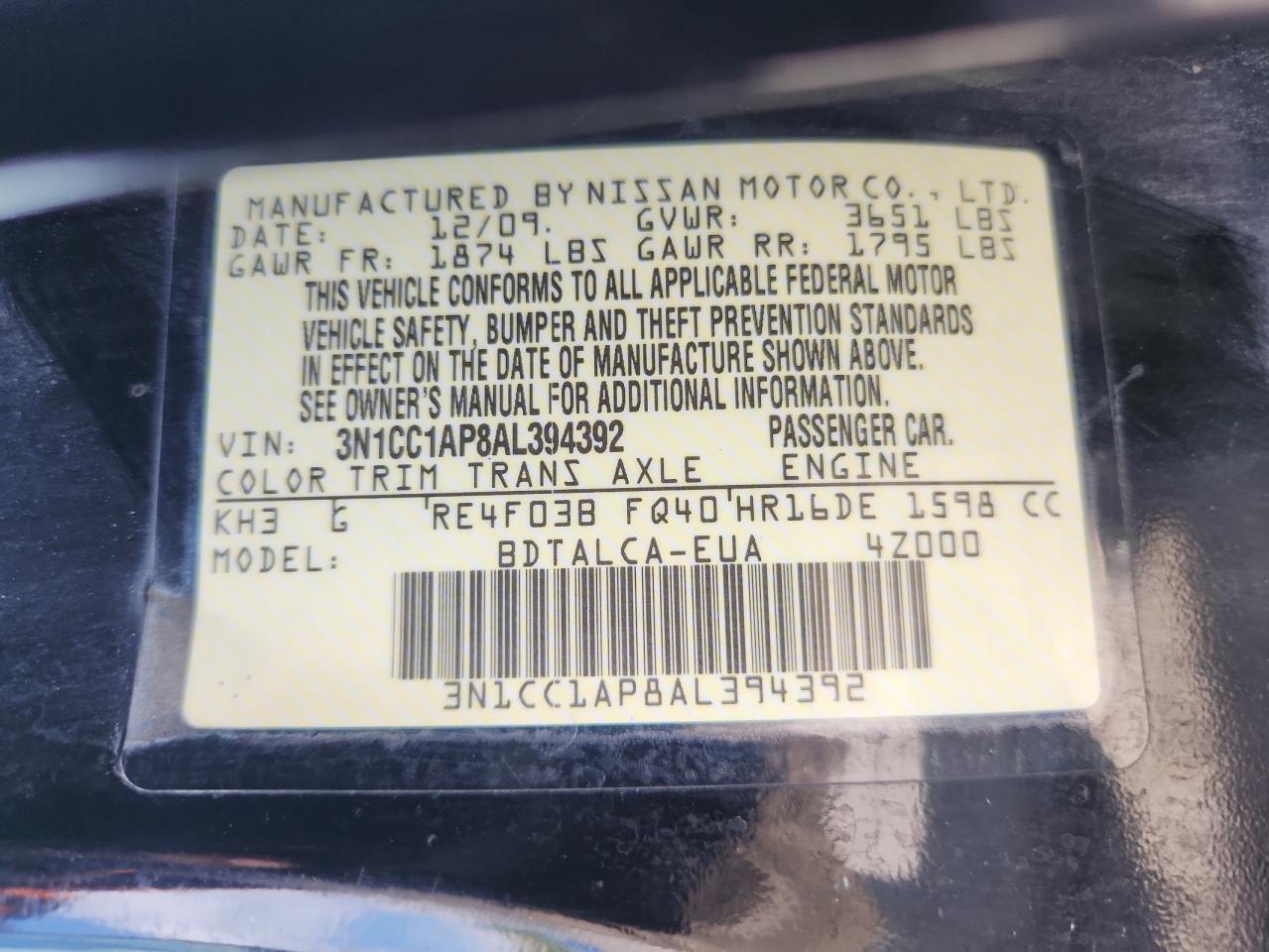 2010 NISSAN VERSA - 3N1CC1AP8AL394392, колір - Чорний, 1.6, Бензин, із США