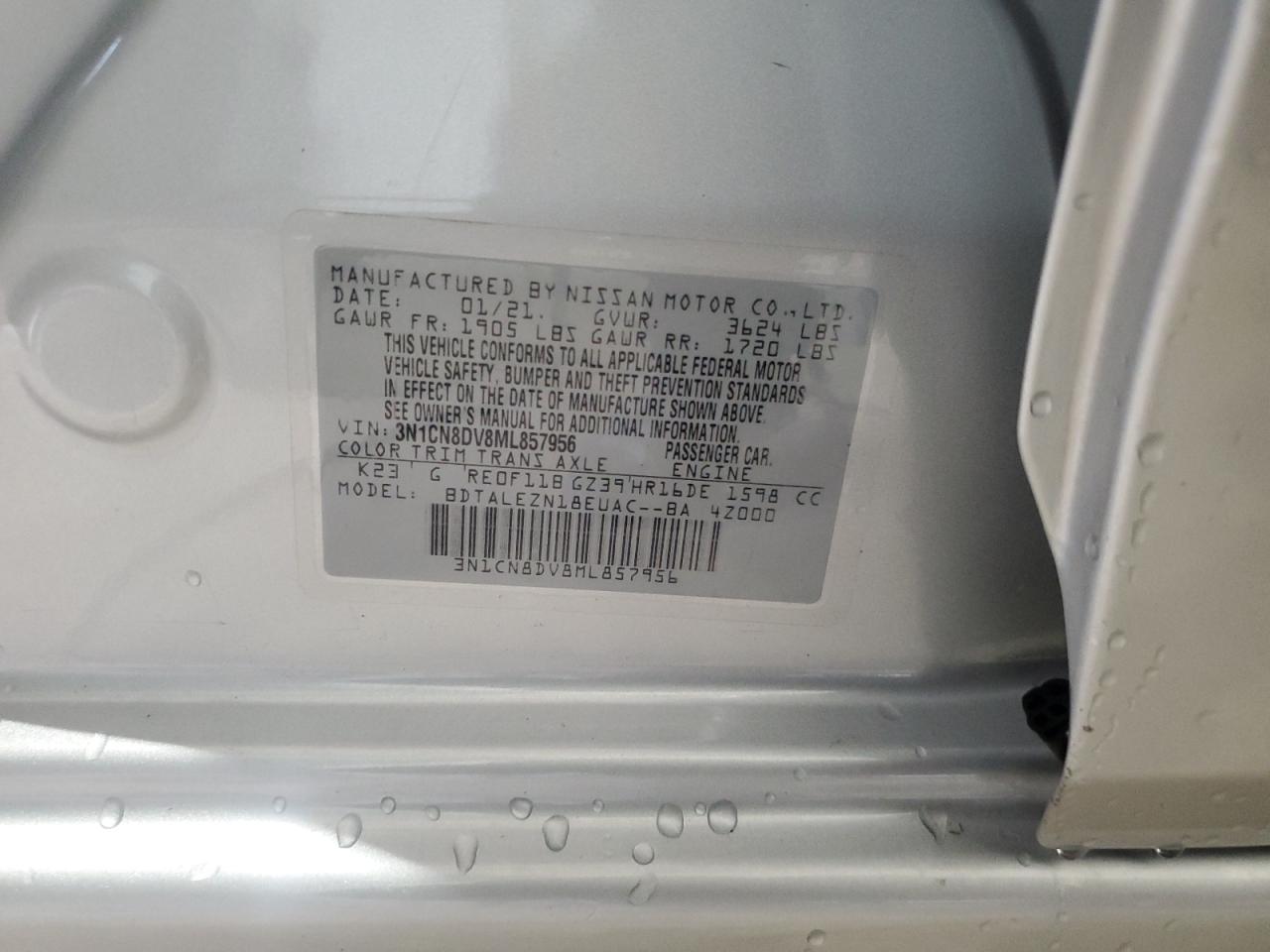 2021 NISSAN VERSA - 3N1CN8DV8ML857956, колір - Срібний, 1.6, Бензин, із США