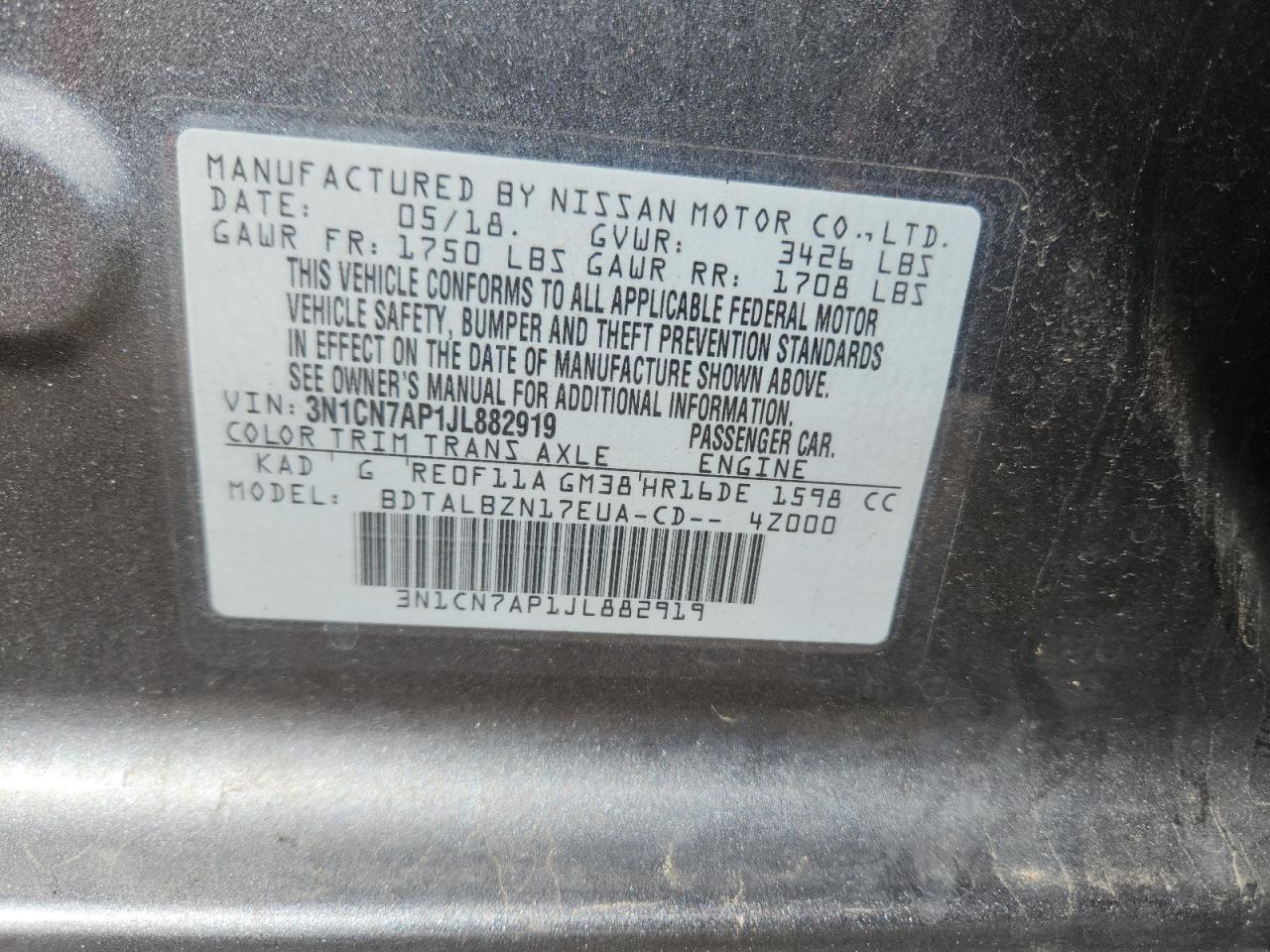2018 NISSAN VERSA - 3N1CN7AP1JL882919, колір - Сірий, 1.6, Бензин, із США
