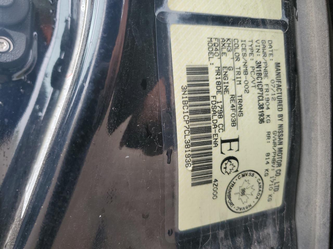 2012 NISSAN VERSA - 3N1BC1CP7CL381936, колір - Чорний, 1.8, Бензин, із США