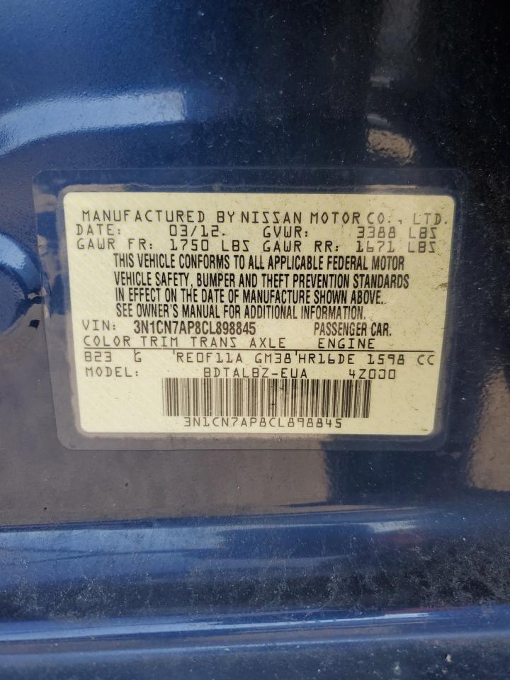 2012 NISSAN VERSA - 3N1CN7AP8CL898845, колір - Синій, 1.6, Бензин, із США