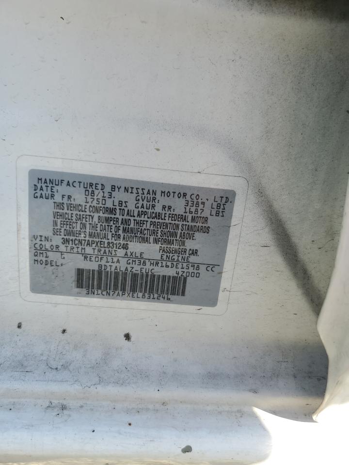 2014 NISSAN VERSA - 3N1CN7APXEL831246, колір - Білий, 1.6, Бензин, із США