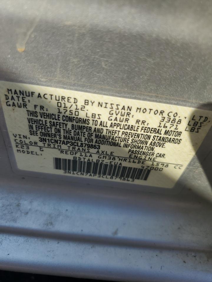 2012 NISSAN VERSA - 3N1CN7AP3CL879863, колір - Срібний, 1.6, Бензин, із США