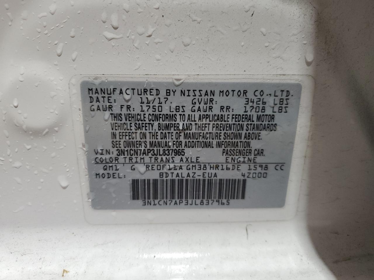2018 NISSAN VERSA - 3N1CN7AP3JL837965, колір - Білий, 1.6, Бензин, із США