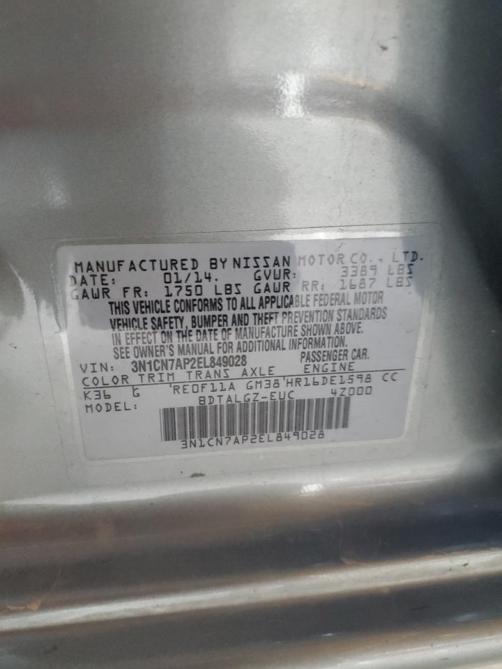 2014 NISSAN VERSA - 3N1CN7AP2EL849028, колір - Сірий, 1.6, Бензин, із США