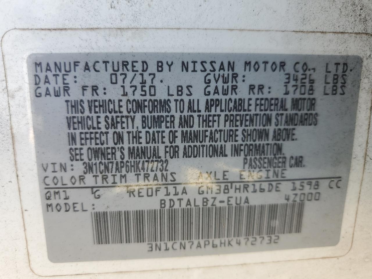 2017 NISSAN VERSA - 3N1CN7AP6HK472732, колір - Білий, 1.6, Бензин, із США