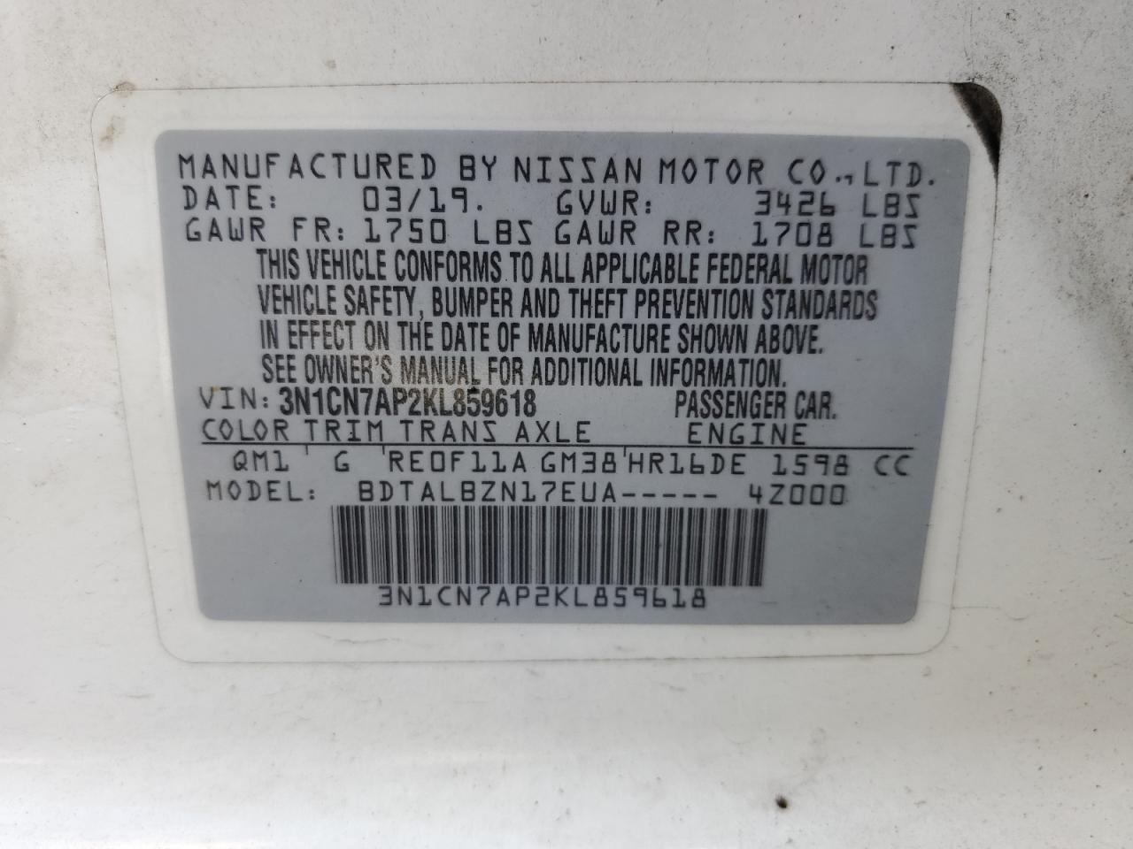 2019 NISSAN VERSA - 3N1CN7AP2KL859618, колір - Білий, 1.6, Бензин, із США