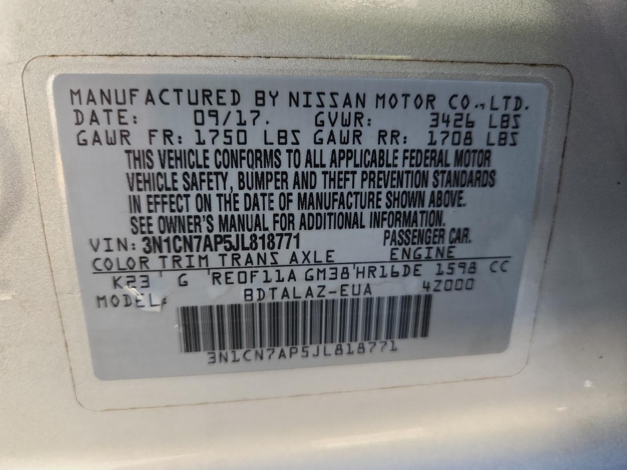 2018 NISSAN VERSA - 3N1CN7AP5JL818771, колір - Срібний, 1.6, Бензин, із США