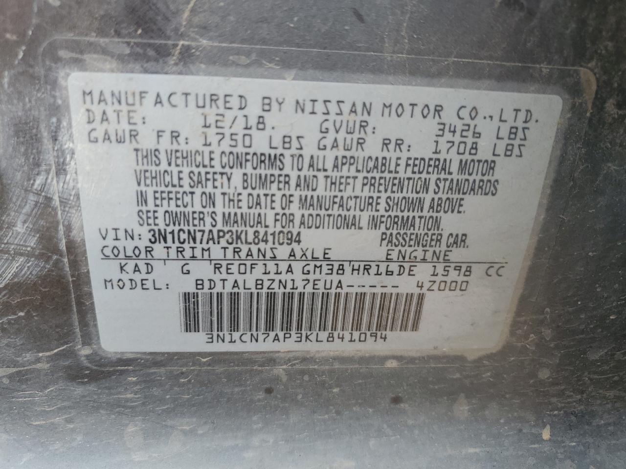 2019 NISSAN VERSA - 3N1CN7AP3KL841094, колір - Сірий, 1.6, Бензин, із США
