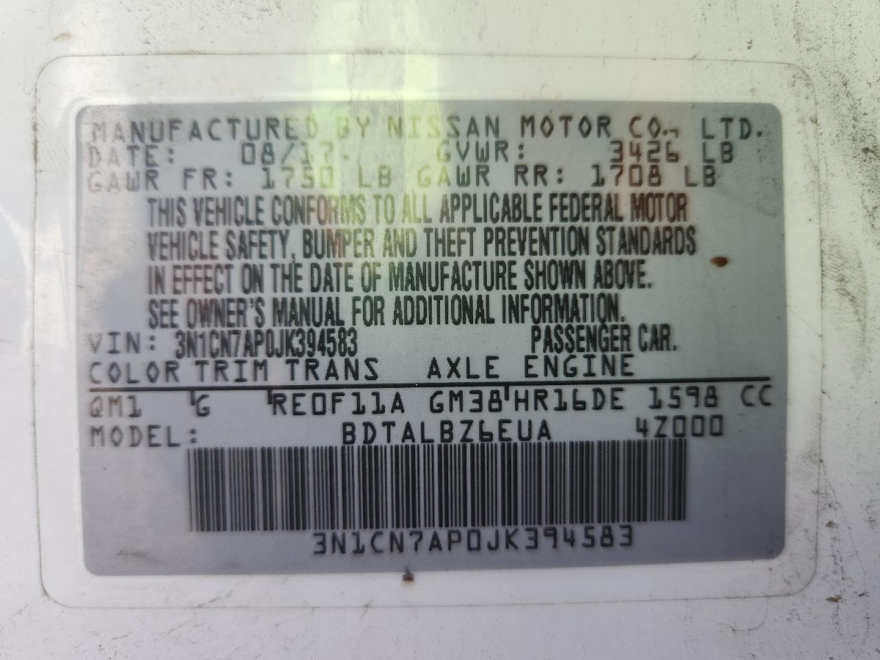 2018 NISSAN VERSA - 3N1CN7AP0JK394583, колір - Білий, 1.6, Бензин, із США