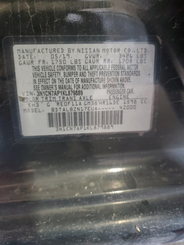 2019 NISSAN VERSA - 3N1CN7AP1KL879889, колір - Чорний, 1.6, Бензин, із США