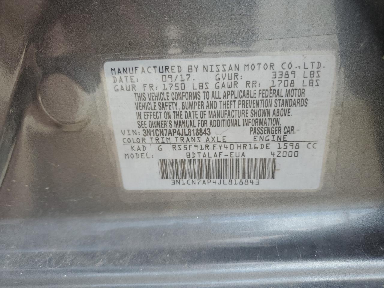 2018 NISSAN VERSA - 3N1CN7AP4JL818843, колір - Сірий, 1.6, Бензин, із США
