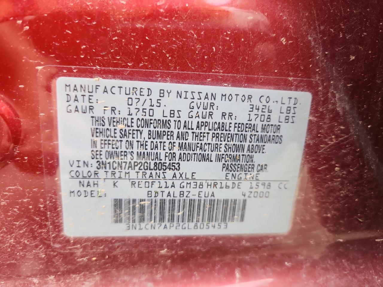 2016 NISSAN VERSA - 3N1CN7AP2GL805453, колір - Червоний, 1.6, Бензин, із США