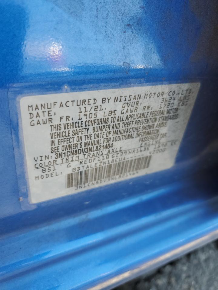 2022 NISSAN VERSA - 3N1CN8DV3NL821464, колір - Синій, 1.6, Бензин, із США