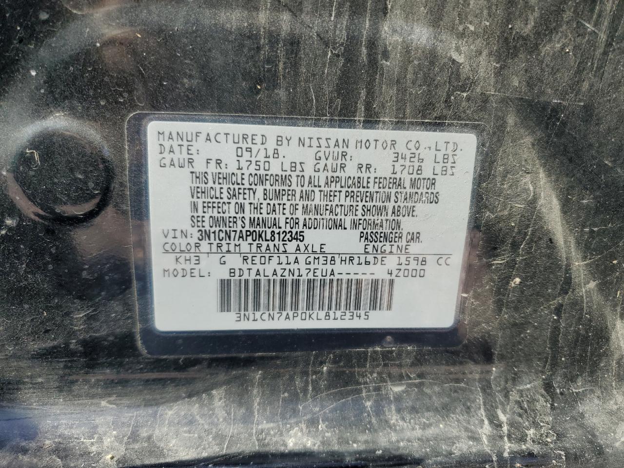 2019 NISSAN VERSA - 3N1CN7AP0KL812345, колір - Чорний, 1.6, Бензин, із США