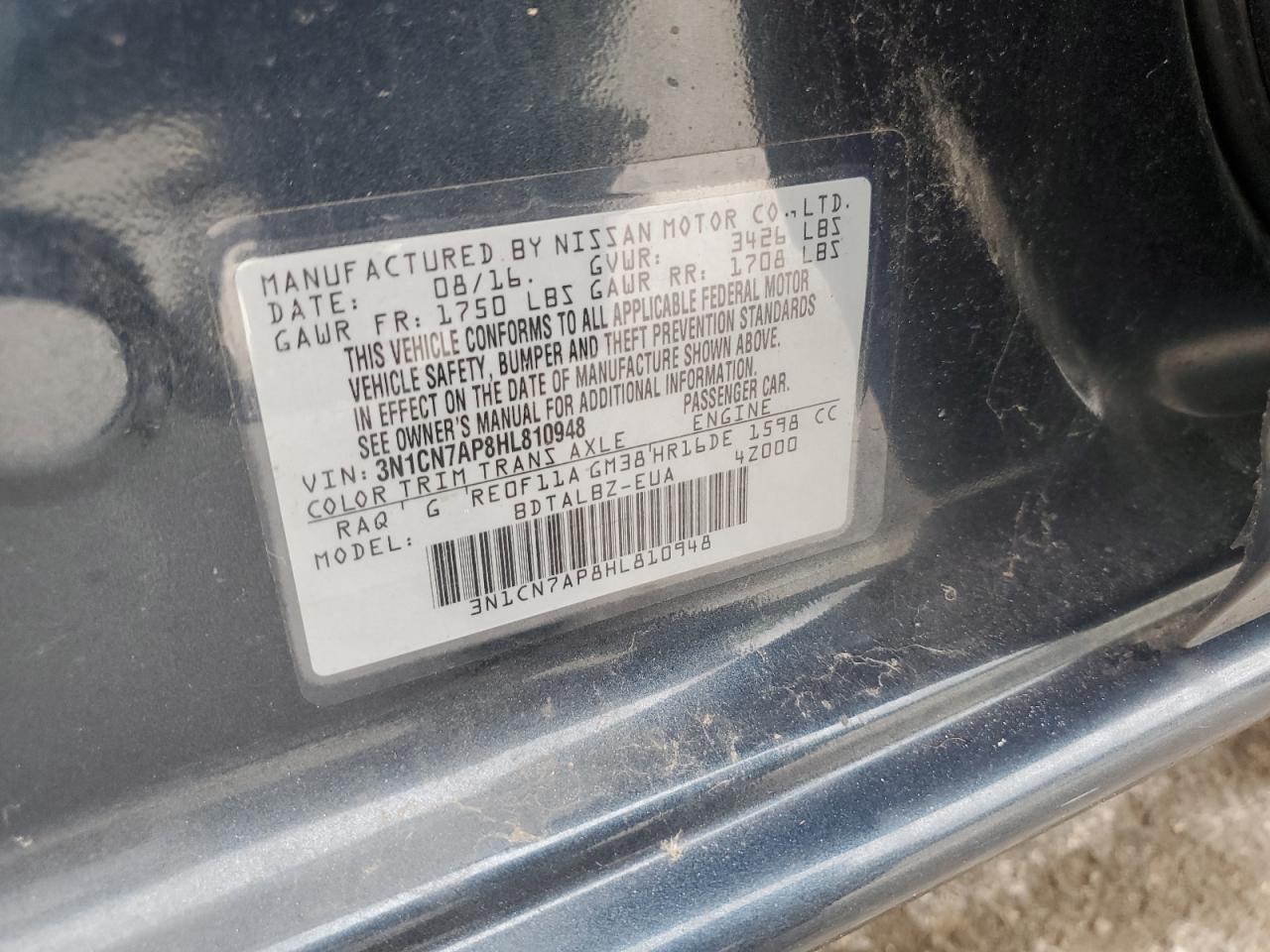 2017 NISSAN VERSA - 3N1CN7AP8HL810948, колір - Синій, 1.6, Бензин, із США