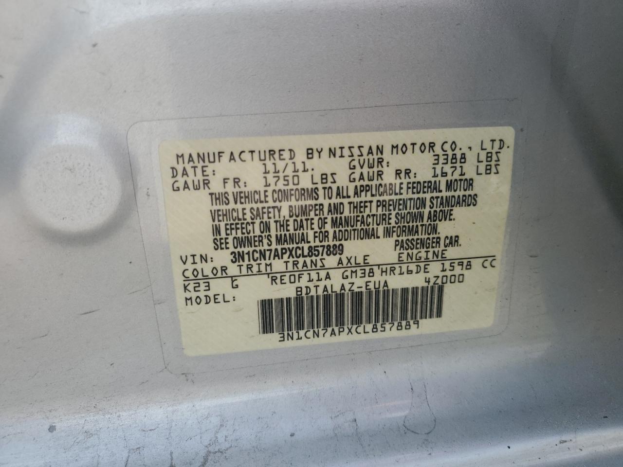 2012 NISSAN VERSA - 3N1CN7APXCL857889, колір - Срібний, 1.6, Бензин, із США