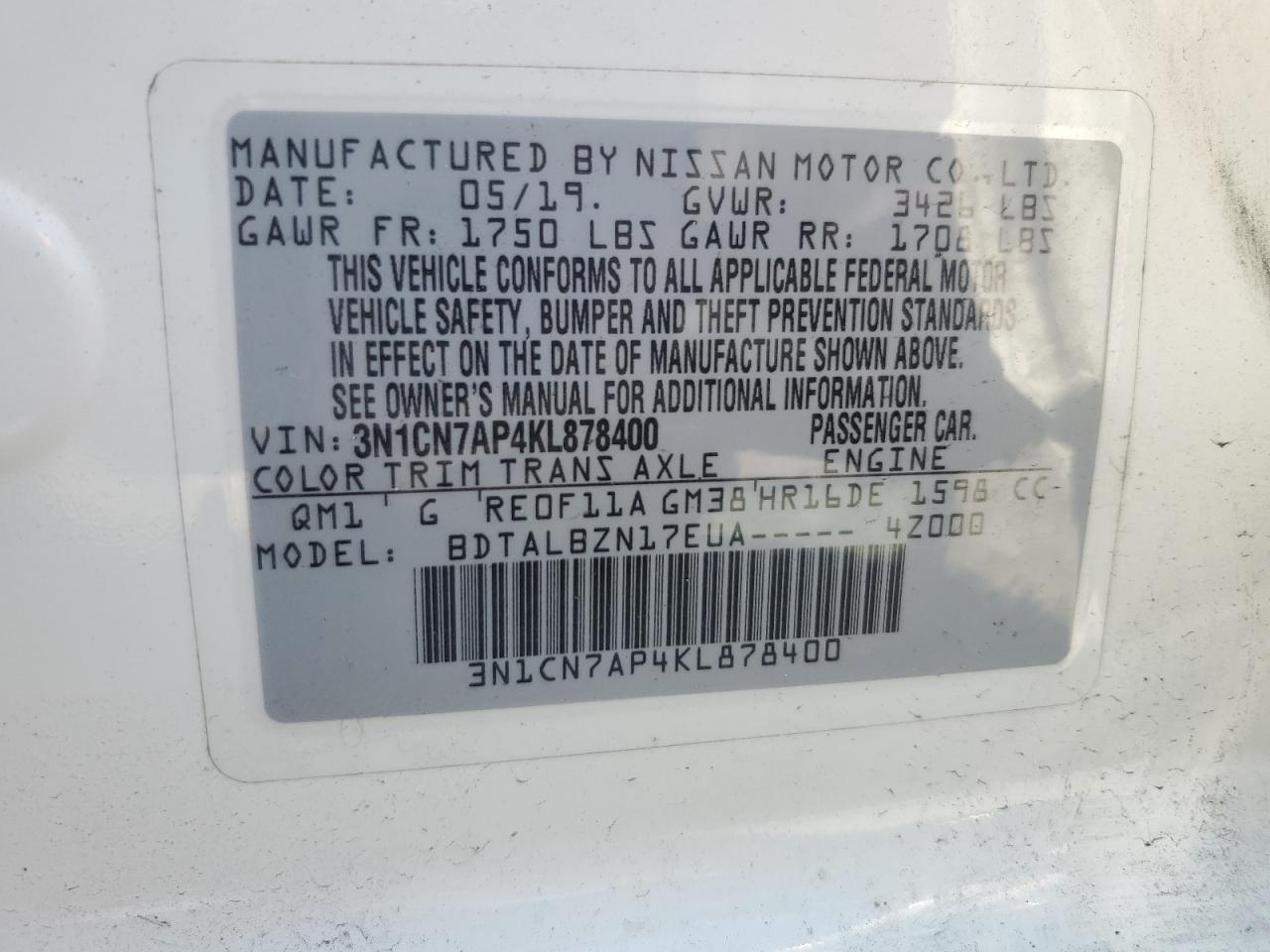 2019 NISSAN VERSA - 3N1CN7AP4KL878400, колір - Білий, 1.6, Бензин, із США