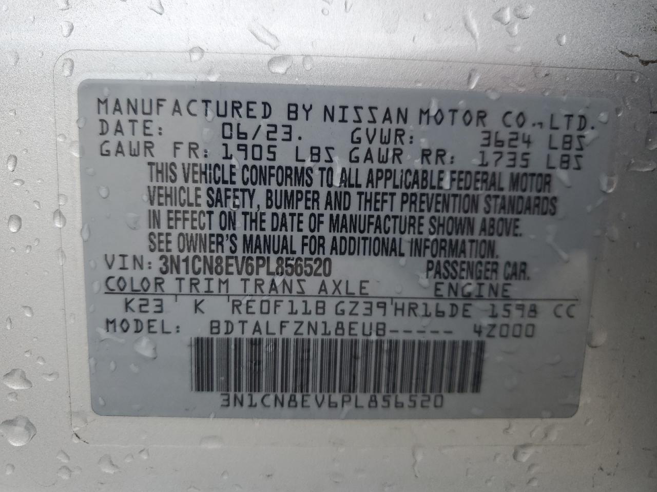 Колір СрібнийЦиліндри 4VIN 3N1CN8EV6PL856520Стан Заводиться та їде (перевірено)Ушкодження ЗадняДата аукціона 2025-10-06