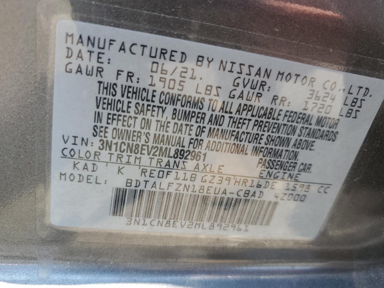 2021 NISSAN VERSA - 3N1CN8EV2ML892961, колір - Деревне вугілля, 1.6, Бензин, із США