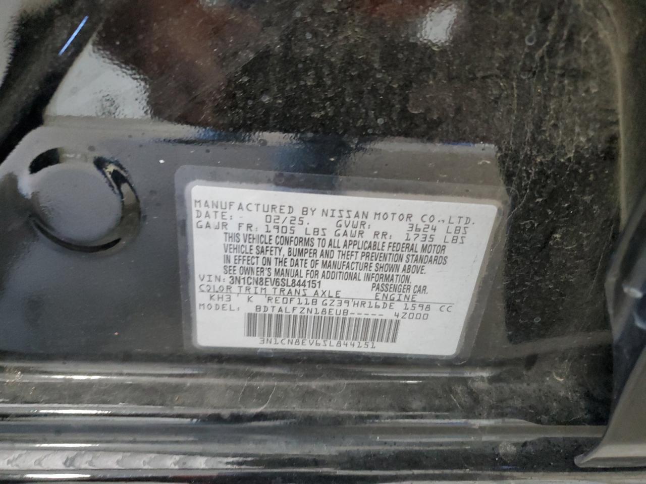 2025 NISSAN VERSA - 3N1CN8EV6SL844151, колір - Чорний, 1.6, Бензин, із США