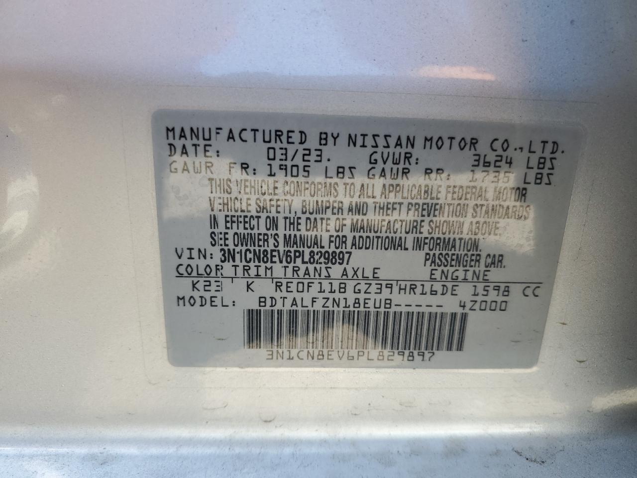 2023 NISSAN VERSA - 3N1CN8EV6PL829897, колір - Срібний, 1.6, Бензин, із США
