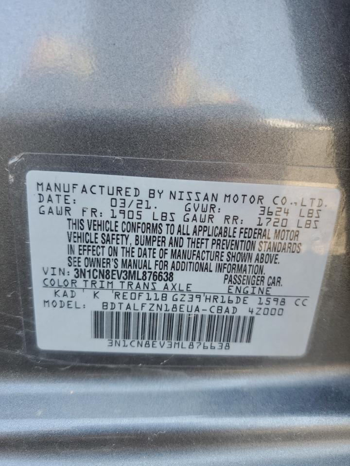 2021 NISSAN VERSA - 3N1CN8EV3ML876638, колір - Сірий, 1.6, Бензин, із США