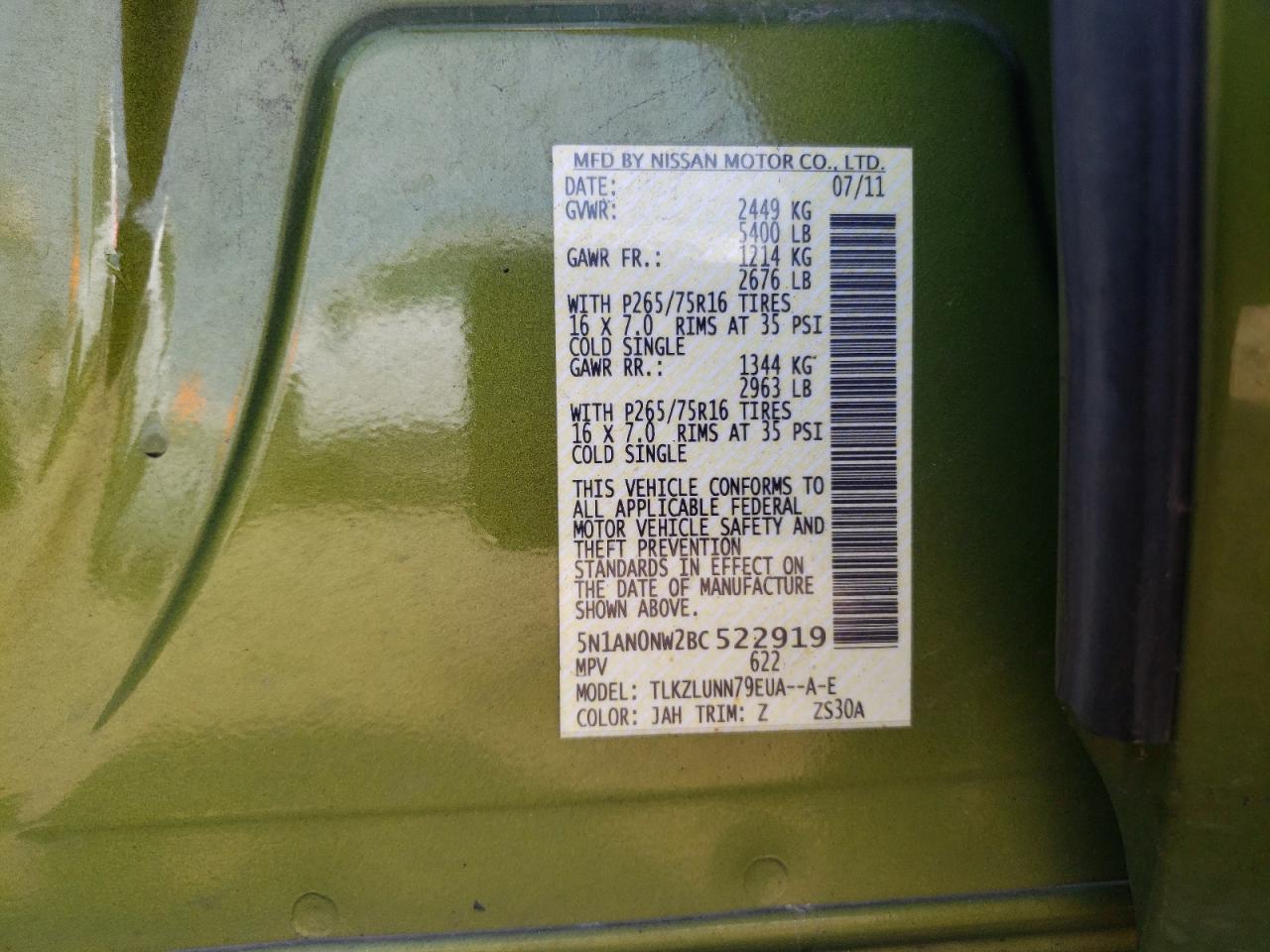 2011 NISSAN XTERRA - 5N1AN0NW2BC522919, колір - Зелений, 4.0, Бензин, 4x4 з заднім приводом із США