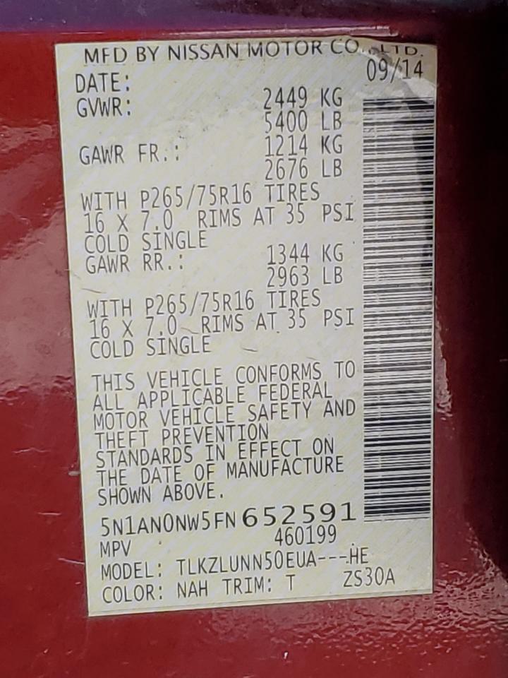 2015 NISSAN XTERRA - 5N1AN0NW5FN652591, колір - Червоний, 4.0, Бензин, 4x4 з заднім приводом із США