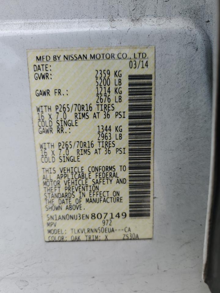 2014 NISSAN XTERRA - 5N1AN0NU3EN807149, колір - Білий, 4.0, Бензин, Задній привід із США