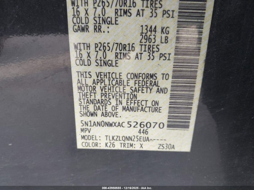2010 NISSAN XTERRA - 5N1AN0NWXAC526070, колір - , 4.0, Бензин, Повний привід із США