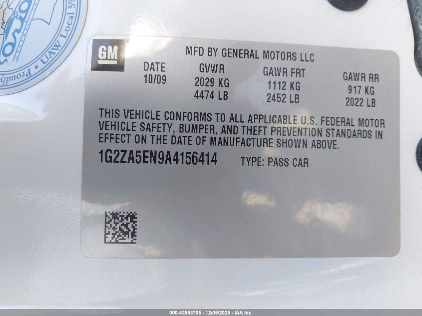Колір БілийЦиліндри 6Привід Передній привідVIN 1G2ZA5EN9A4156414Стан ЗаводитьсяУшкодження Передня або задняДата аукціона 2025-12-19