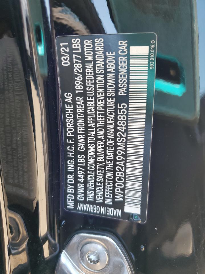 2021 PORSCHE 911 - WP0CB2A99MS248855, колір - Чорний, 3.0, Бензин, Задній привід із США