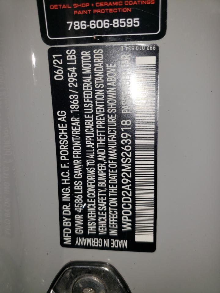 2021 PORSCHE 911 - WP0CD2A92MS263918, колір - Сірий, 3.8, Бензин, Повний привід із США