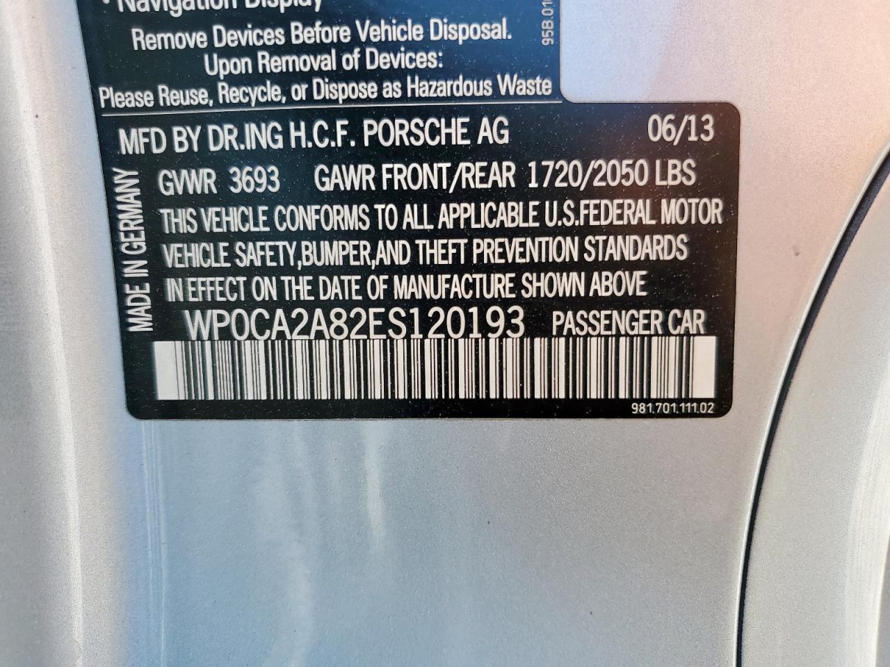 2014 PORSCHE BOXSTER - WP0CA2A82ES120193, колір - Срібний, 2.7, Бензин, Задній привід із США