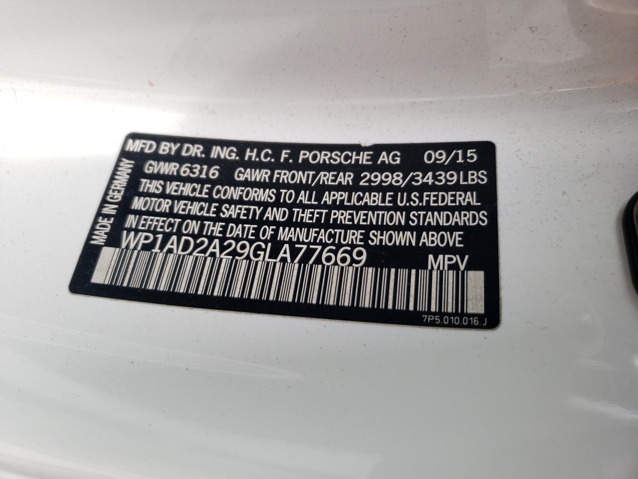 Колір БілийЦиліндри 6Привід Повний привідVIN WP1AD2A29GLA77669Стан НевідомоУшкодження Незначні