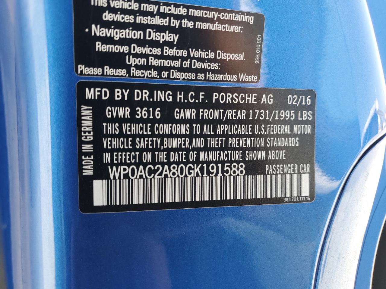 2016 PORSCHE CAYMAN - WP0AC2A80GK191588, колір - Синій, 3.8, Бензин, Задній привід із США
