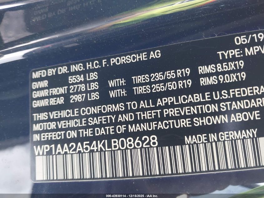 2019 PORSCHE MACAN - WP1AA2A54KLB08628, колір - Синій, 2.0, Бензин, Повний привід із США