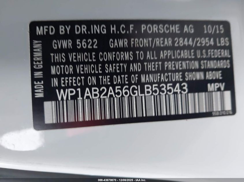 2016 PORSCHE MACAN - WP1AB2A56GLB53543, колір - Білий, 3.0, Бензин, Повний привід із США