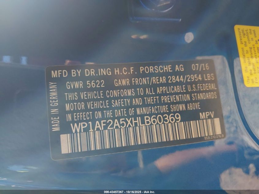 2017 PORSCHE MACAN - WP1AF2A5XHLB60369, колір - Синій, 3.6, Бензин, Повний привід із США