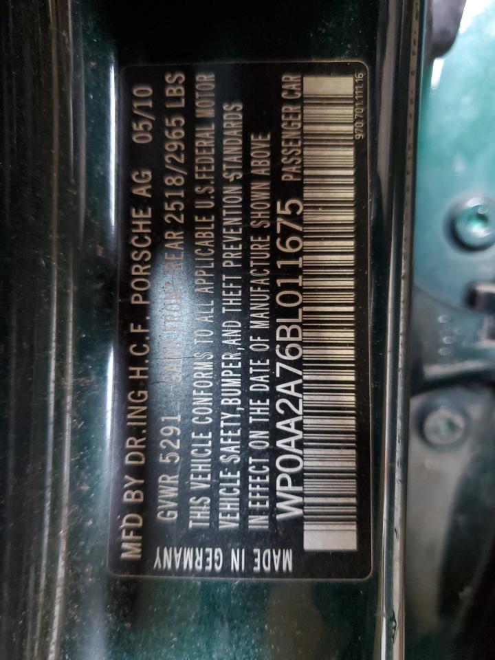 2011 PORSCHE PANAMERA - WP0AA2A76BL011675, колір - Зелений, 3.6, Бензин, Задній привід із США